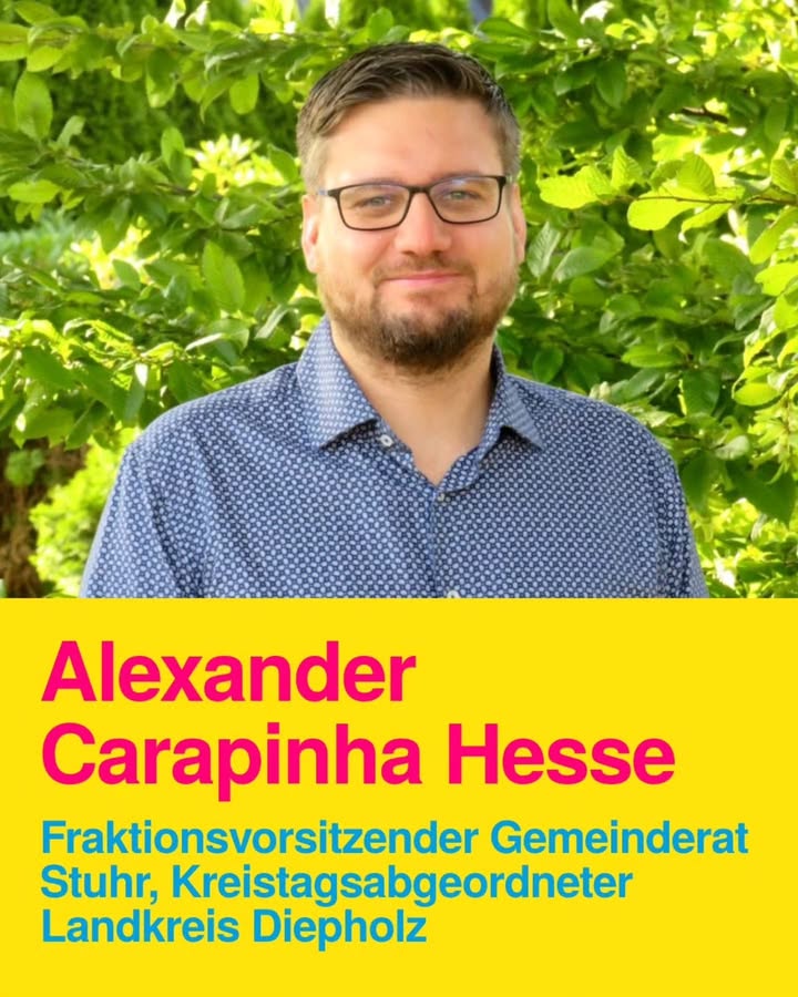 Heute stellen wir unseren kommunalen Helden Alexander Carapinha Hesse vor! 💛 Als Kreistagsabgeordneter im Landkreis Diepholz und Fraktionsvorsitzender der FDP im Gemeinderat Stuhr setzt sich Alexander besonders für zukunftsfähige Mobilität, starke Gewerbestrukturen, bezahlbares Wohnen und die gezielte Stärkung des Ehrenamts ein. 🚲🏠 Seine Motivation schöpft er aus der Überzeugung, dass engagierte Menschen mit klaren Ideen vor Ort wirklich etwas bewegen können. 💪 👉 Du möchtest wie Alexander Verantwortung in deiner Gemeinde oder in deinem Landkreis übernehmen? Dann kandidiere bei der #kommunalwahl2026 für die Freien Demokraten und bring dich aktiv ein! #kommunalehelden #ehrenamt #diepholz #stuhr #niedersachsen #fdp